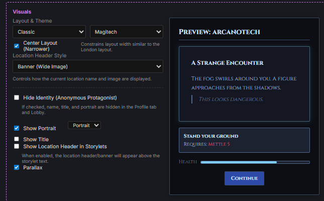 Can you please publish at least one game? I want an example of how games are supposed to be made. Also black crown looks like actually StoryNexus and I’m trying to remake that look but I can’t find a theme that does that so it looks like black crown.
