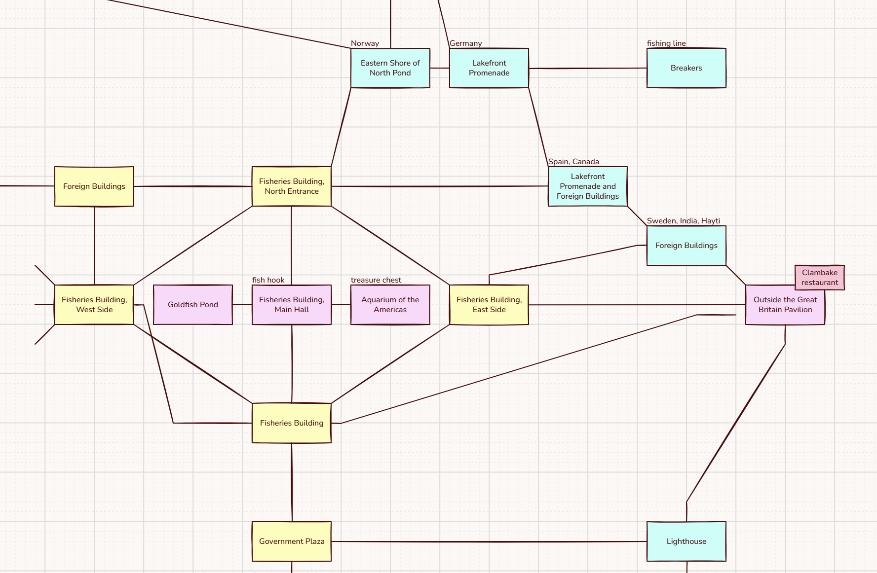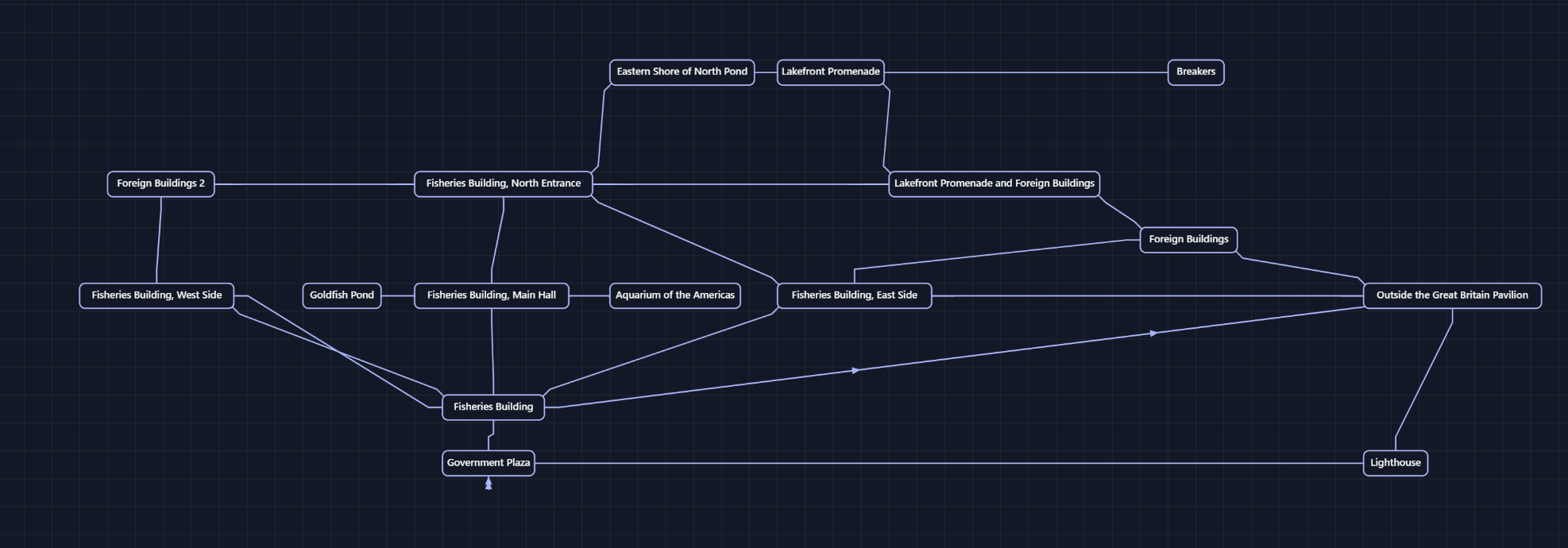 This is very cool! Feels very snappy. Did run into a few issues though. I tested it out with a bit of 1893: A World’s Fairy mystery, this is the result of the prettify command. It seems it doesn’t handle long room names too well? Though to be fair I chose this section especially because it has weird connections and was particularly tricky to map.