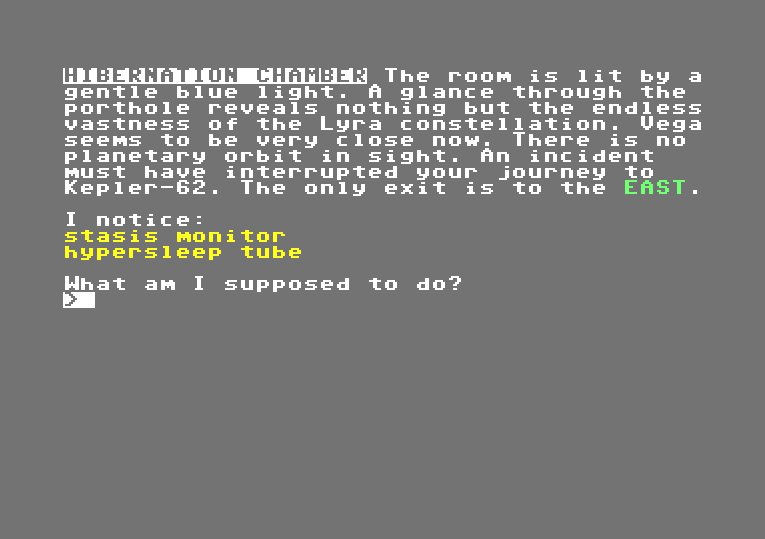 It’s a RETRO adventure quest in space written with Gilsoft QUILL for c64 or c64 emulators.