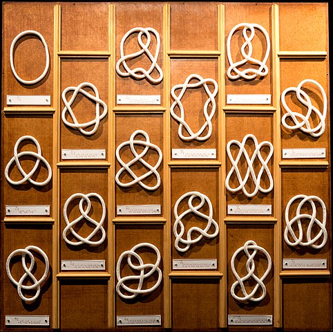 Trivia re: String Theory cover art. It’s on the Wikipedia knot theory page: Knot theory - Wikipedia. The image there is much higher resolution, so you can see the writing under each knot, identifying which knot in the knot table it is, and including what I believe are their Alexander polynomials.