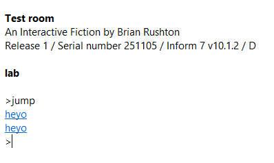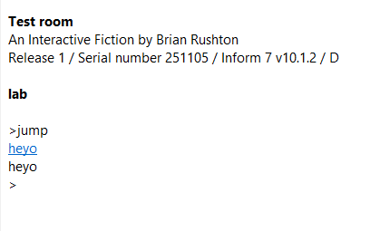 Also, I remembered where this came up before! It happens with bold text too. So it’s not a Bisquixe thing, just an Inform thing. Check this out: