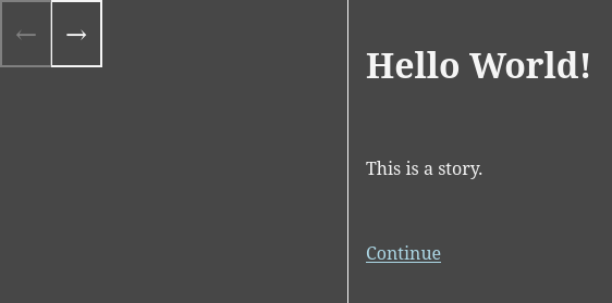 Currently the framework provides the Webpack loaders for generating passages, a history system inspired by Sugarcube, and I’m working on a saving system right now. That is, the saving system works, but currently only the automatic save to session storage after a history change, like Sugarcube does, I’ve jet to finish the saving UI. Another nice thing I got working is a webpack loader that enables you to use markdown at compile time in the Svelte component passages, so you don’t have to ship marked in the final build.