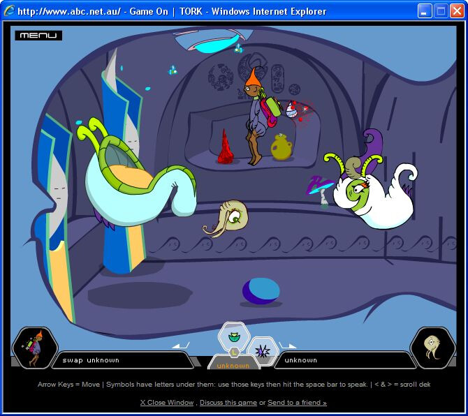 Gently lifting the lid on one of @Draconis’ bubbling pots brings back, aside from definite hints of karbanátek and bramboračka, memories of one particular game more than any other. A game which I lost myself in for hours in the days of yore, when I was young and Flash was still in its prime. A SF game about a bumbling young interstellar explorer stranded in an alien nest, desperately trying to communicate with the inhabitants to gain their help in getting home. (Without accidentally telling them to “Lick my hairy whale shark balls!” and getting thrown into outer space…)