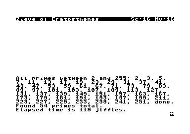 Here’s a story that finds all the prime numbers below 256. Could handle more than 256 but would really be better as a Z5 story since those implement bit shifts.