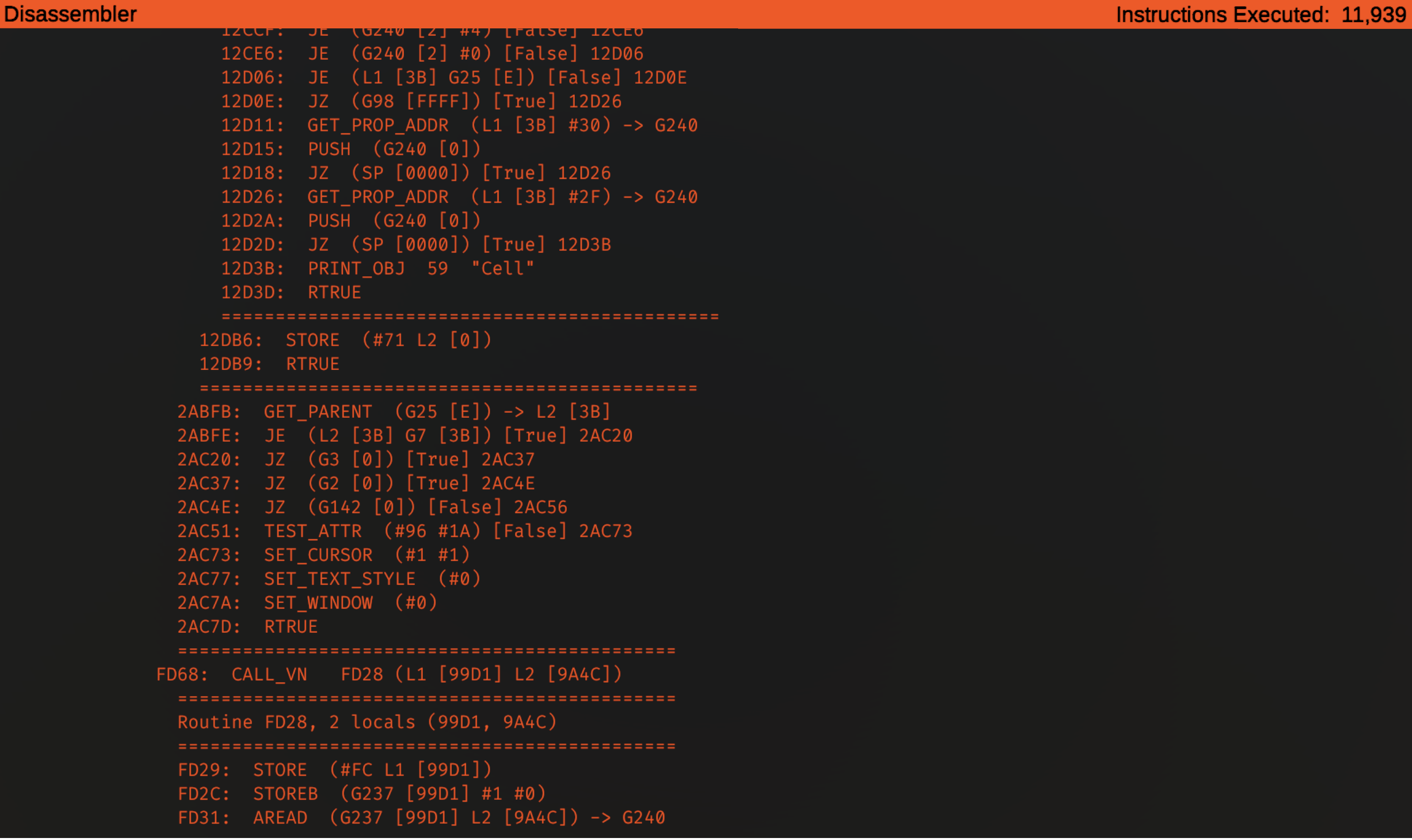 I’ve thought about writing a script to match up the ZIL code for a function against the disassembly dump of the same function and pull out line numbers for every opcode. Then I decided not to.