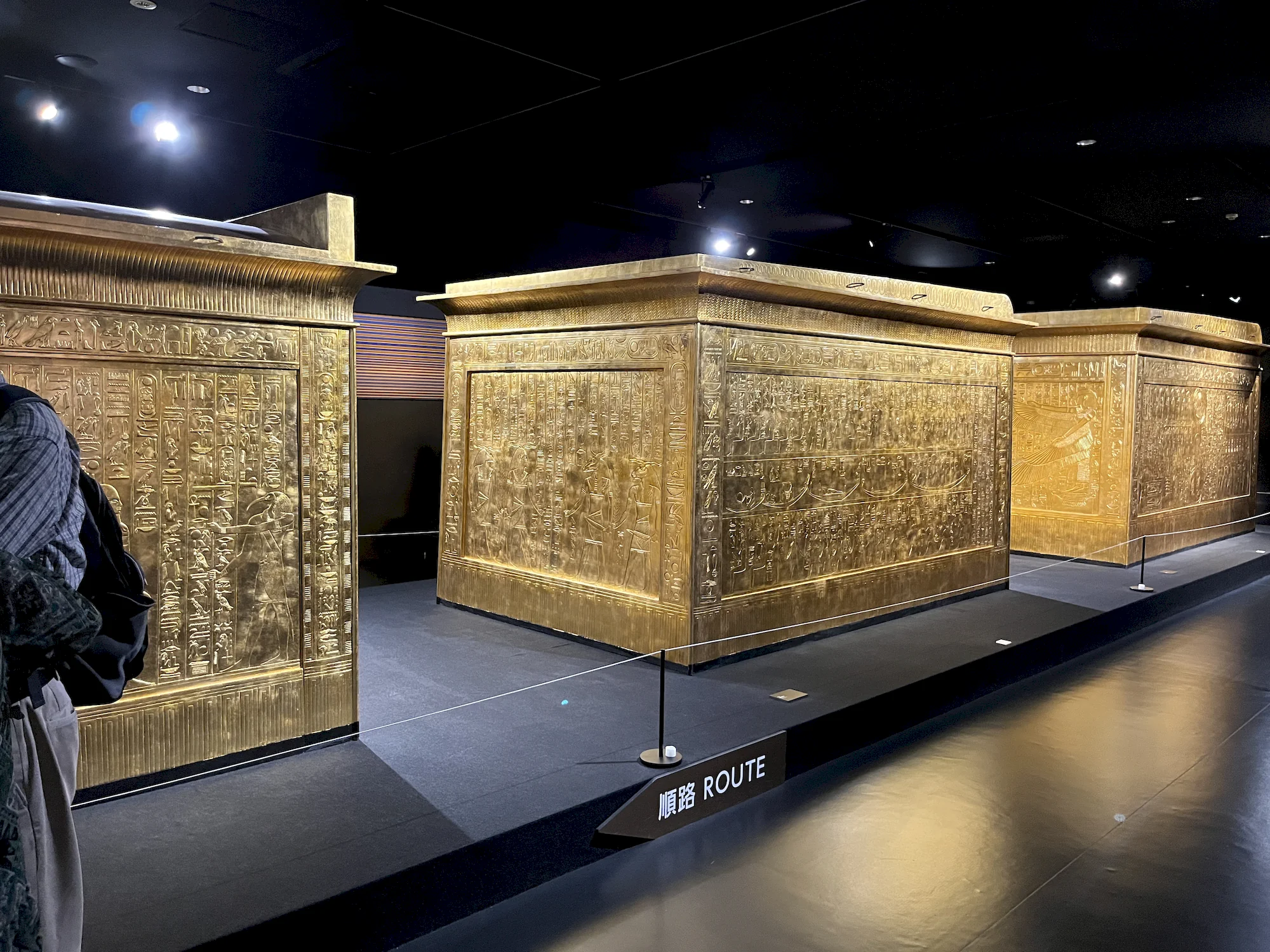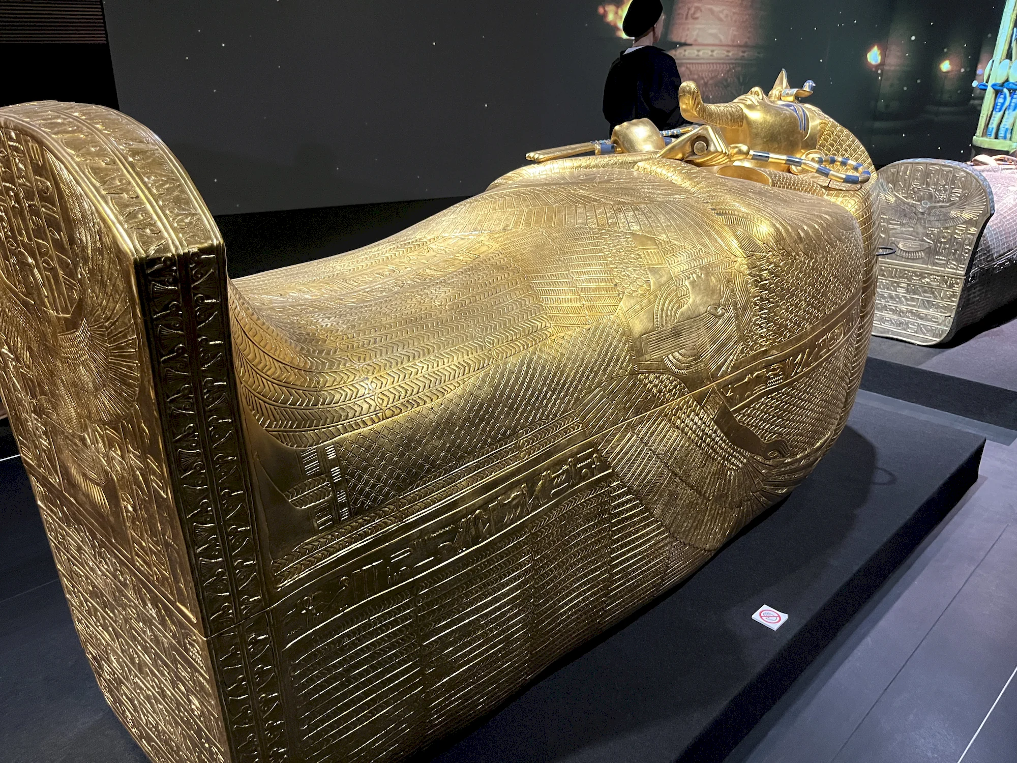 I have the somewhat unpopular and controversial view that none of the exhibits are genuine and they are all fakes. Every time I see a Tut exhibition, there is somehow more stuff. In the last one, there were three more outer caskets (also gold) for the inner coffin. Where did these come from?