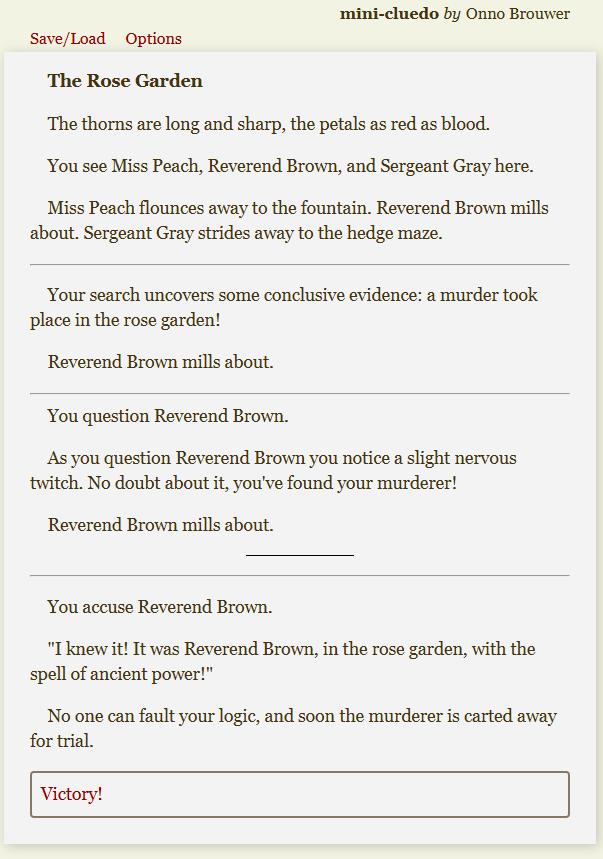 goTo: win if accused = murderer and location = crimeScene; lose if accused != murderer or location != crimeScene