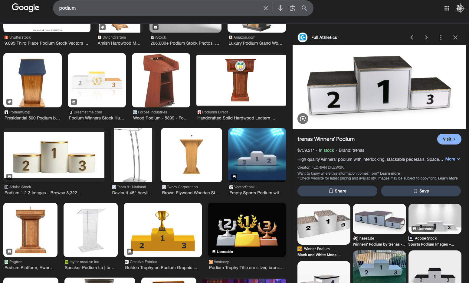 However, if I search “podium” to buy one, I get images of lecterns that are called podiums, so language-morph strikes again.