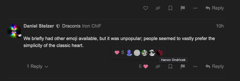 tbh I didn’t realise that there were different options for like outside of the heart until you mentioned it just now (but at the same time, I barely use the forum’s reaction features so that could be why)