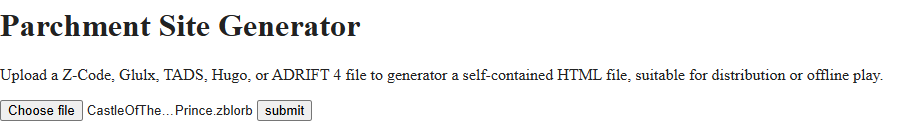 If I chuck a zblorb or gblorb into the Parchment Site Generator and then put the resulting page in an iframe (e.g. as happens via itch.io), we now get this extra loading page: