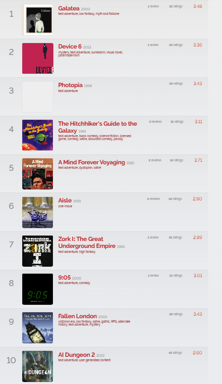 It really drives home how, globally, fans of text adventures and interactive fiction are fragmented into different communities that don’t really communicate with each other or even know of each other’s existence or appreciate each others’ games.