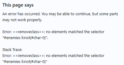 The #enemies li:not(#char-0) selector relies on the <ul> element having a value of enemies assigned to its id attribute. So the selector can find all of the child <li> elements that don’t have char-0 assigned to their id attributes.