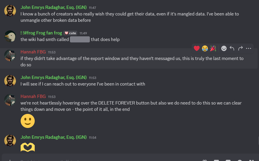 So, if we know any creators. Please ask them to reach out. It would be a shame to see the data lost forever.