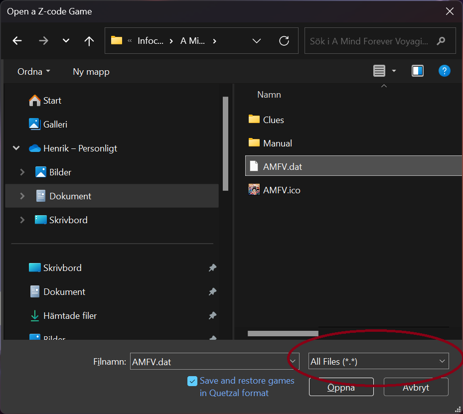 What everybody above said + you don’t need to rename the file, you can open it as it is. Just change the filter in the bottom right corner. (Also, AMFV is z4, not z5).