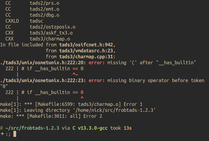It’s probably wise to wait/ask for distribution packages of frobtads, as I tried building the current source release 1.2.3 on my Ubuntu 24.04 system just now and got this error: