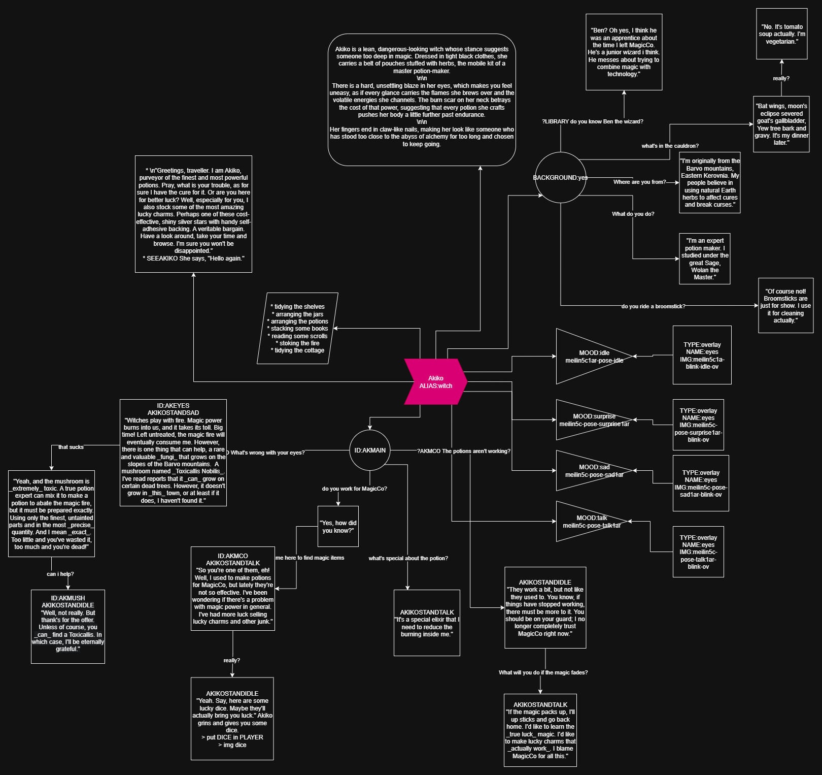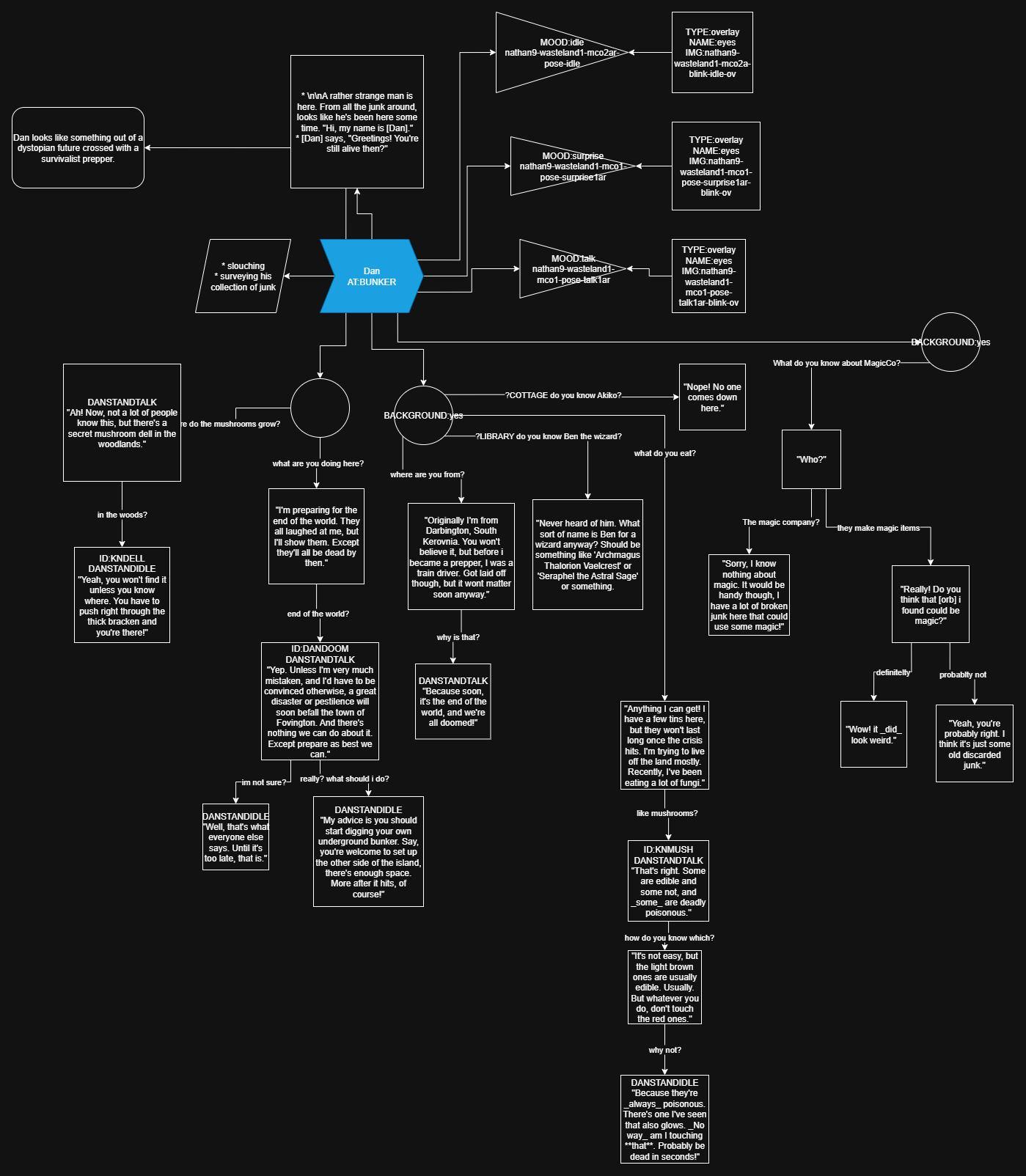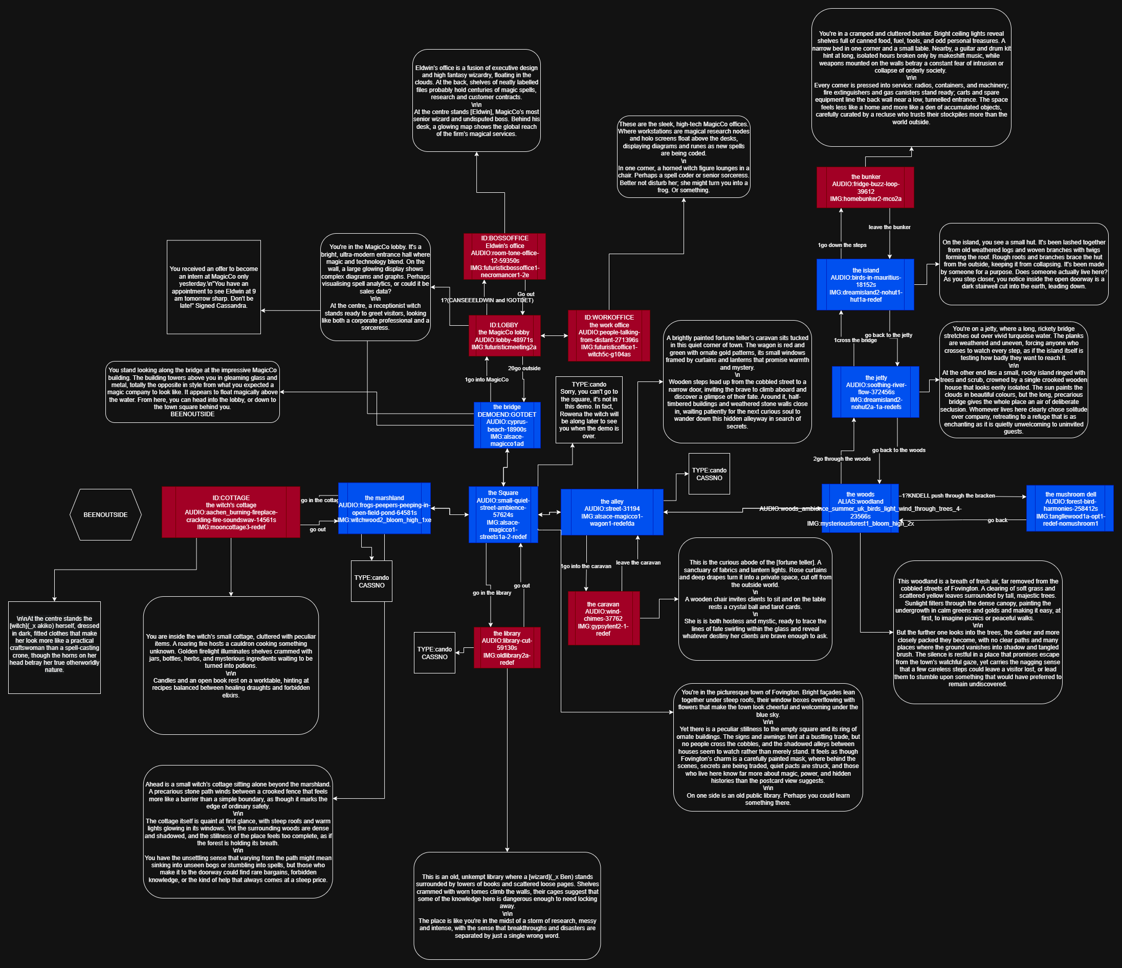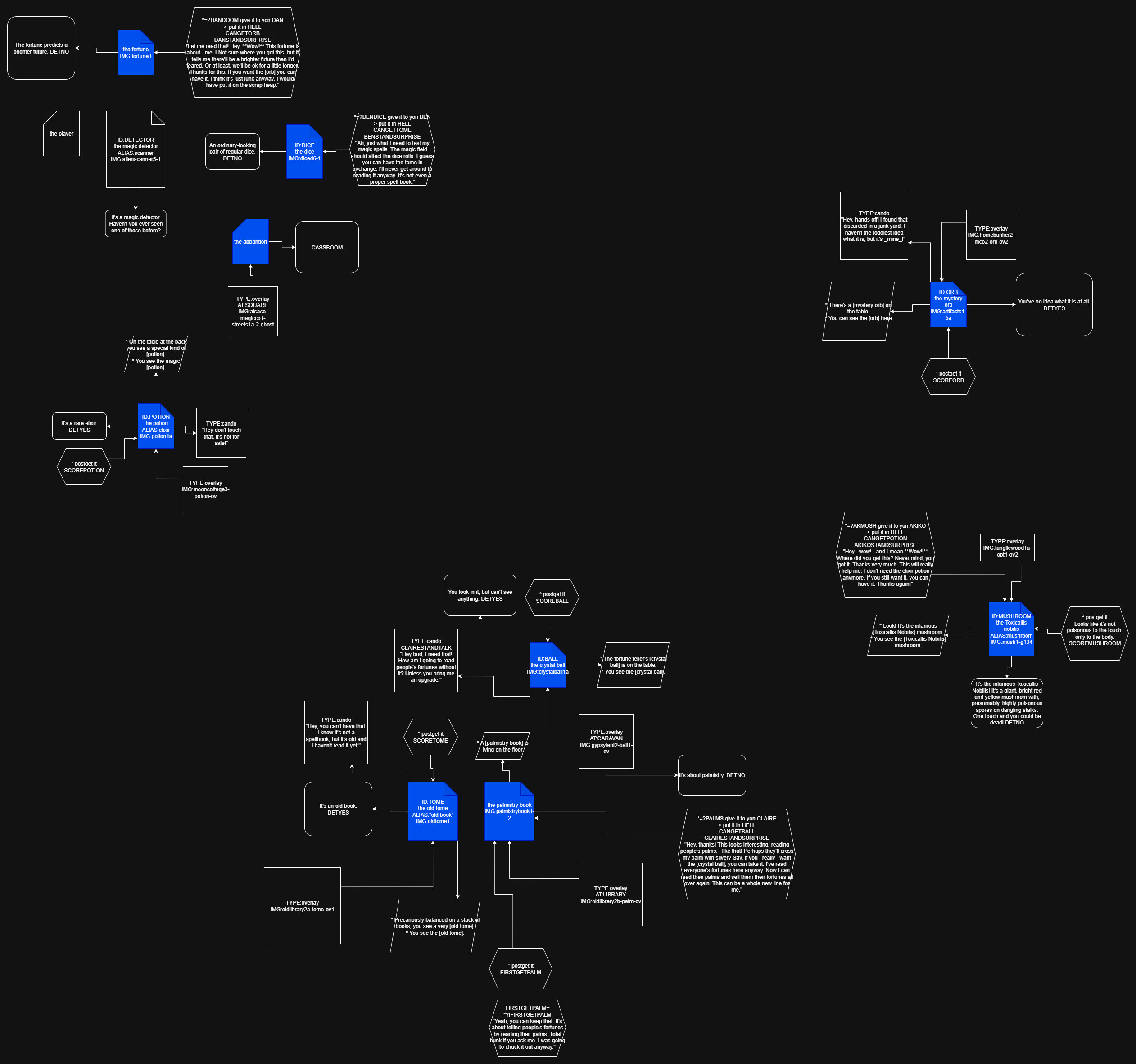 All objects have actions. These are described as parser commands, followed by a consequential “flow”. I use the parser predominantly as an authoring tool, although players can use it too